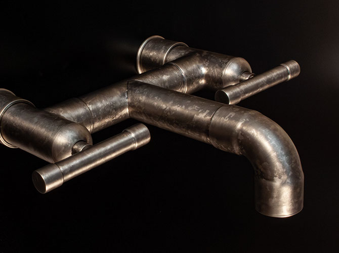 The distinctive lines of WaterBridge faucets are a beautiful blend of raw plumbing parts and your choice of