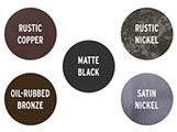 The standard finishes to choose from are Rustic Copper, Rustic Nickel, Satin Nickel,