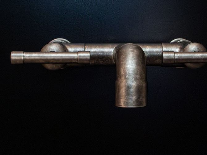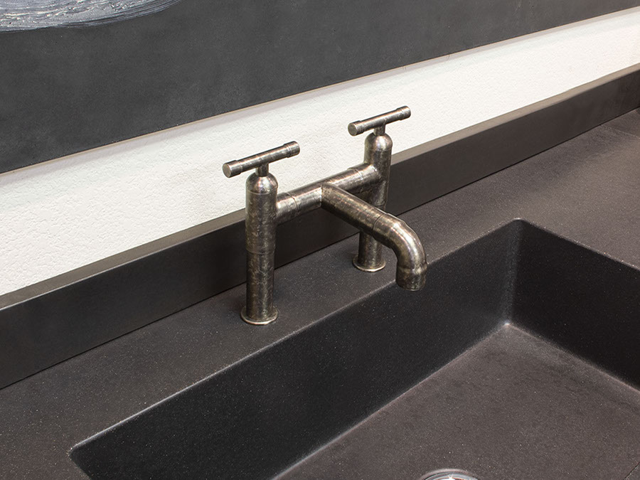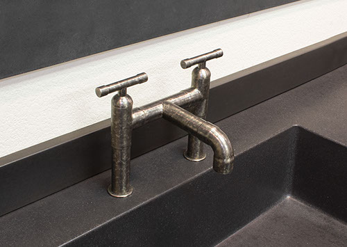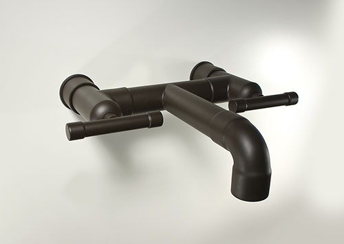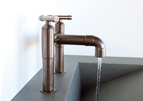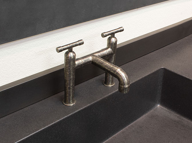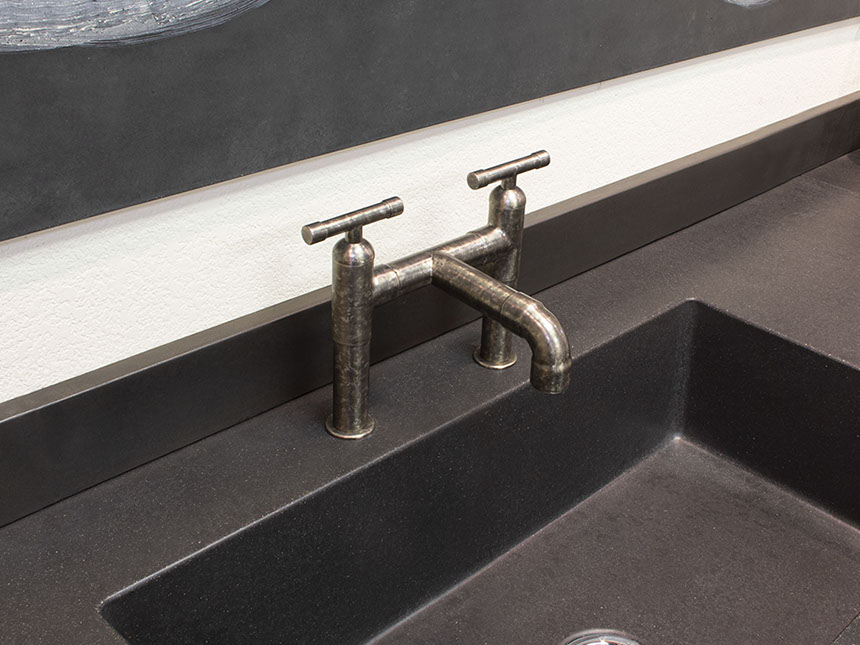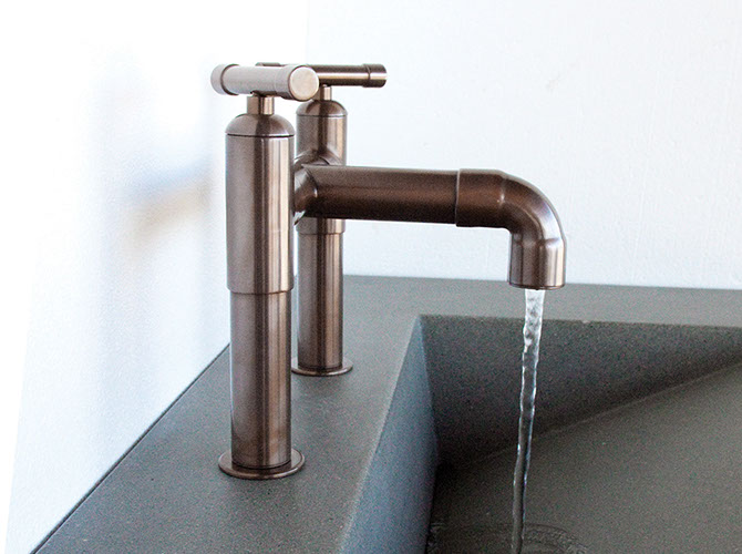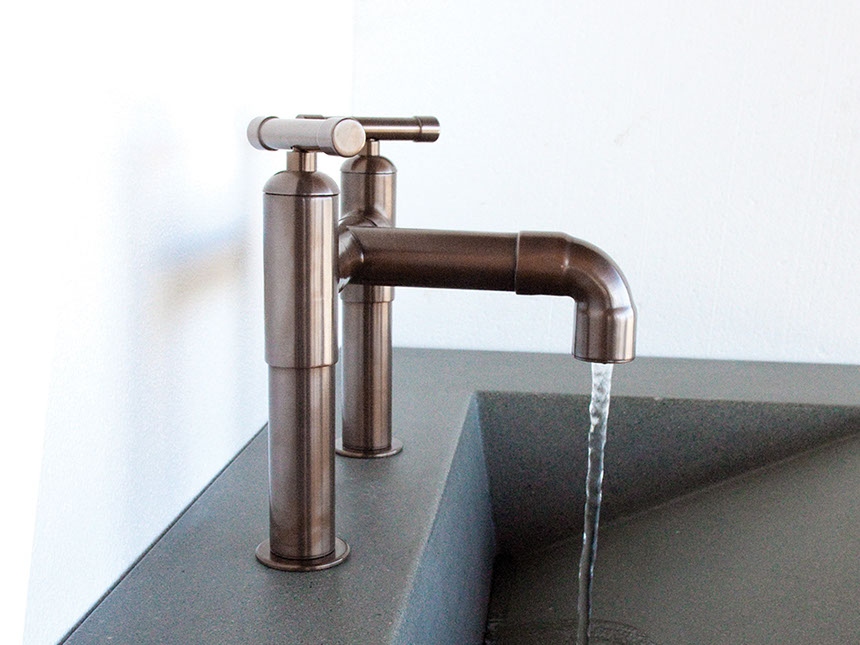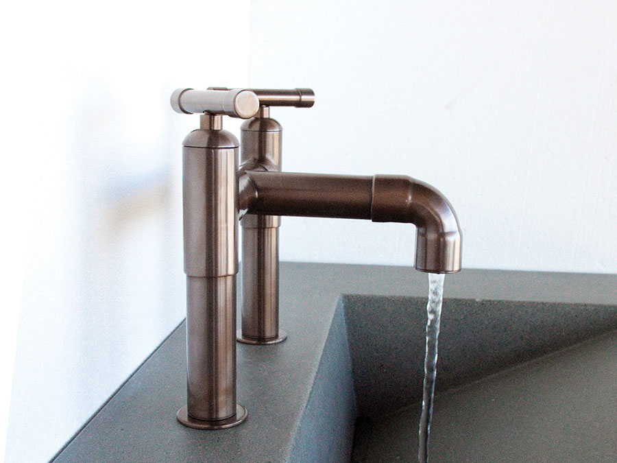 The distinctive lines of WaterBridge faucets are a beautiful blend of raw plumbing parts and your choice of