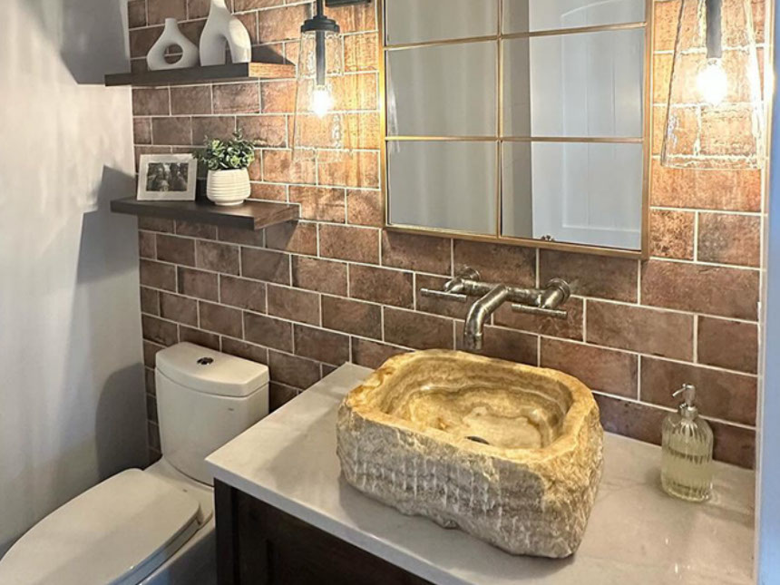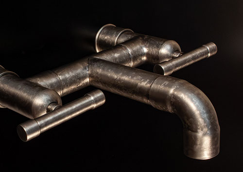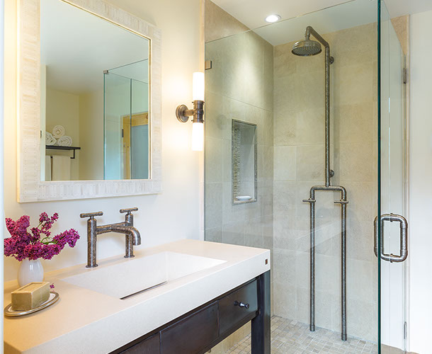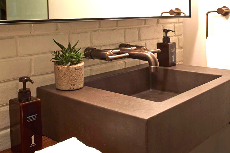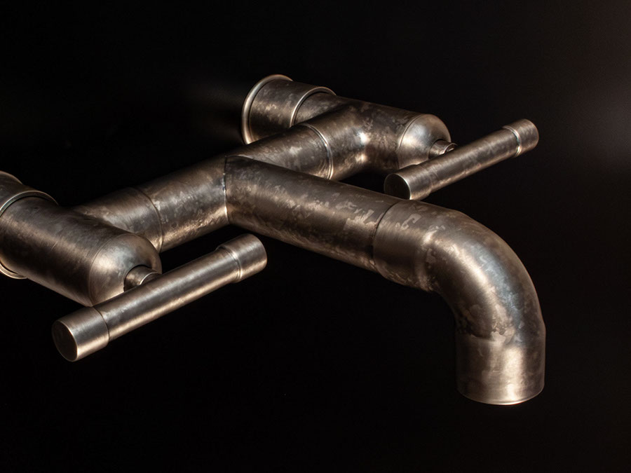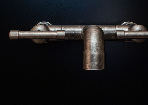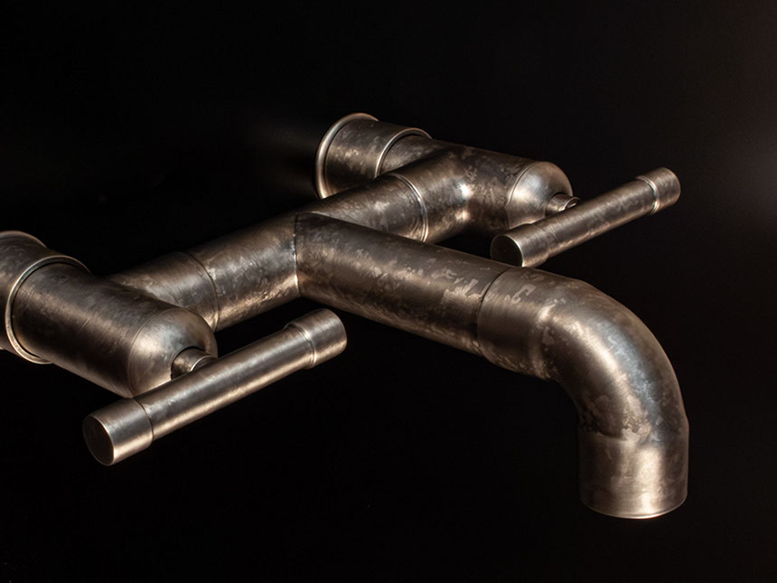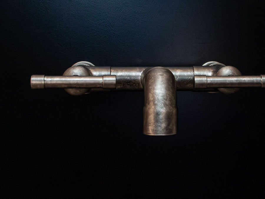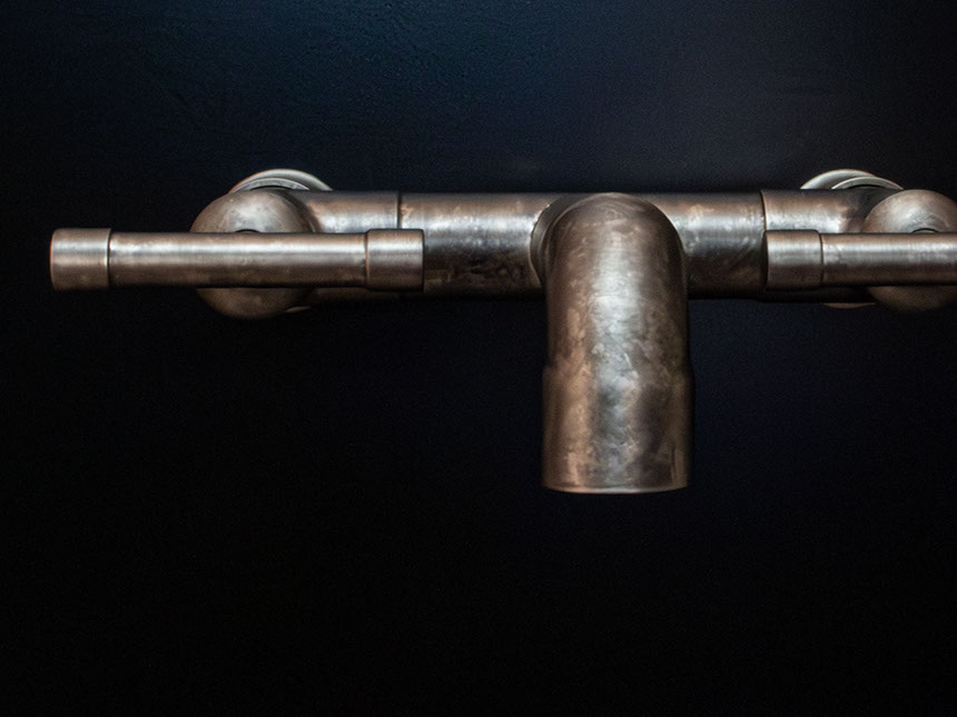 The distinctive lines of WaterBridge faucets are a beautiful blend of raw plumbing parts and your choice of