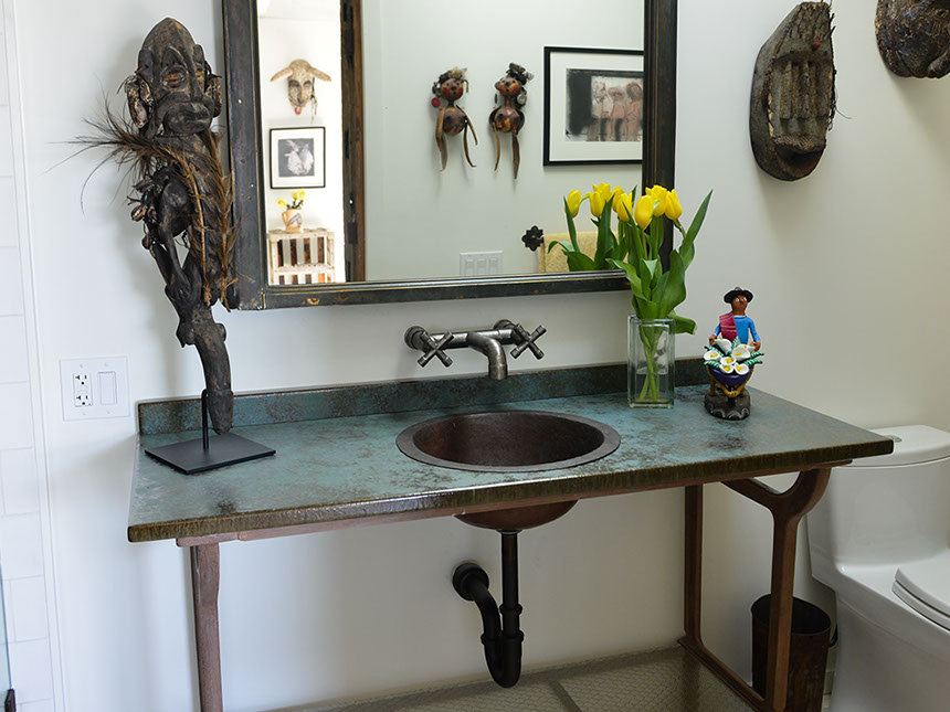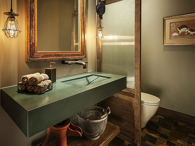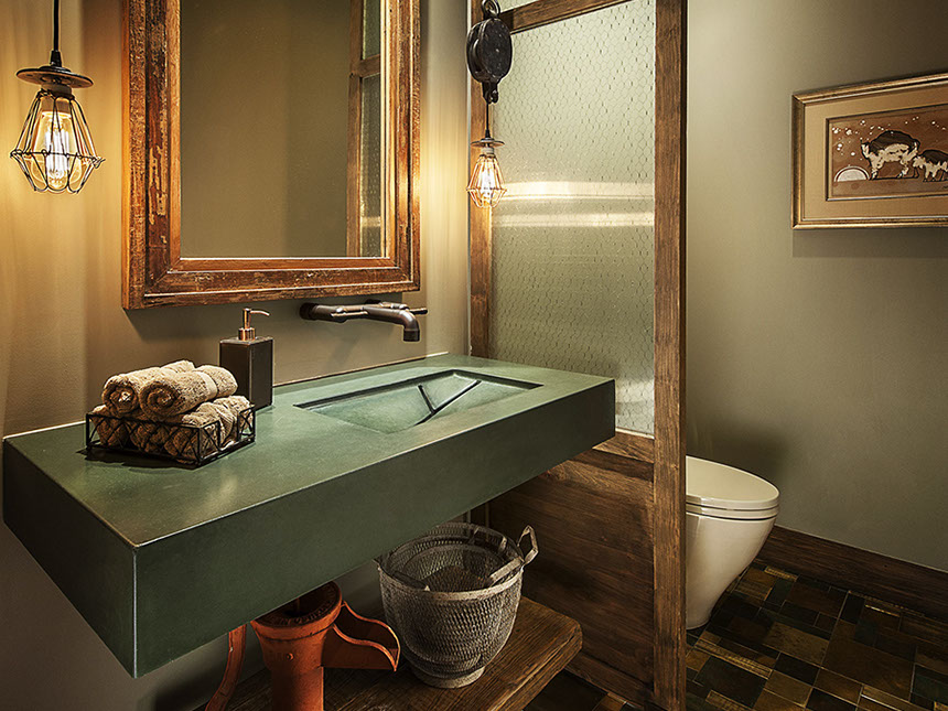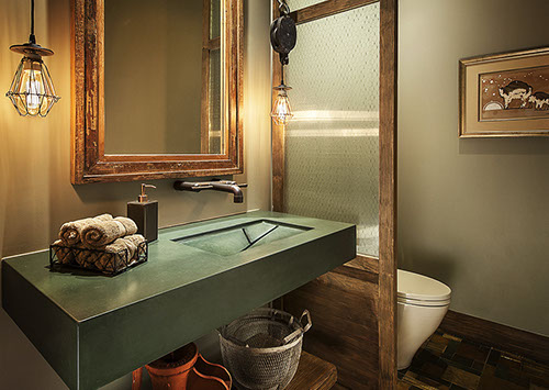 an Asian-inspired waterfall spout or the more industrial elbow spout (shown here).
